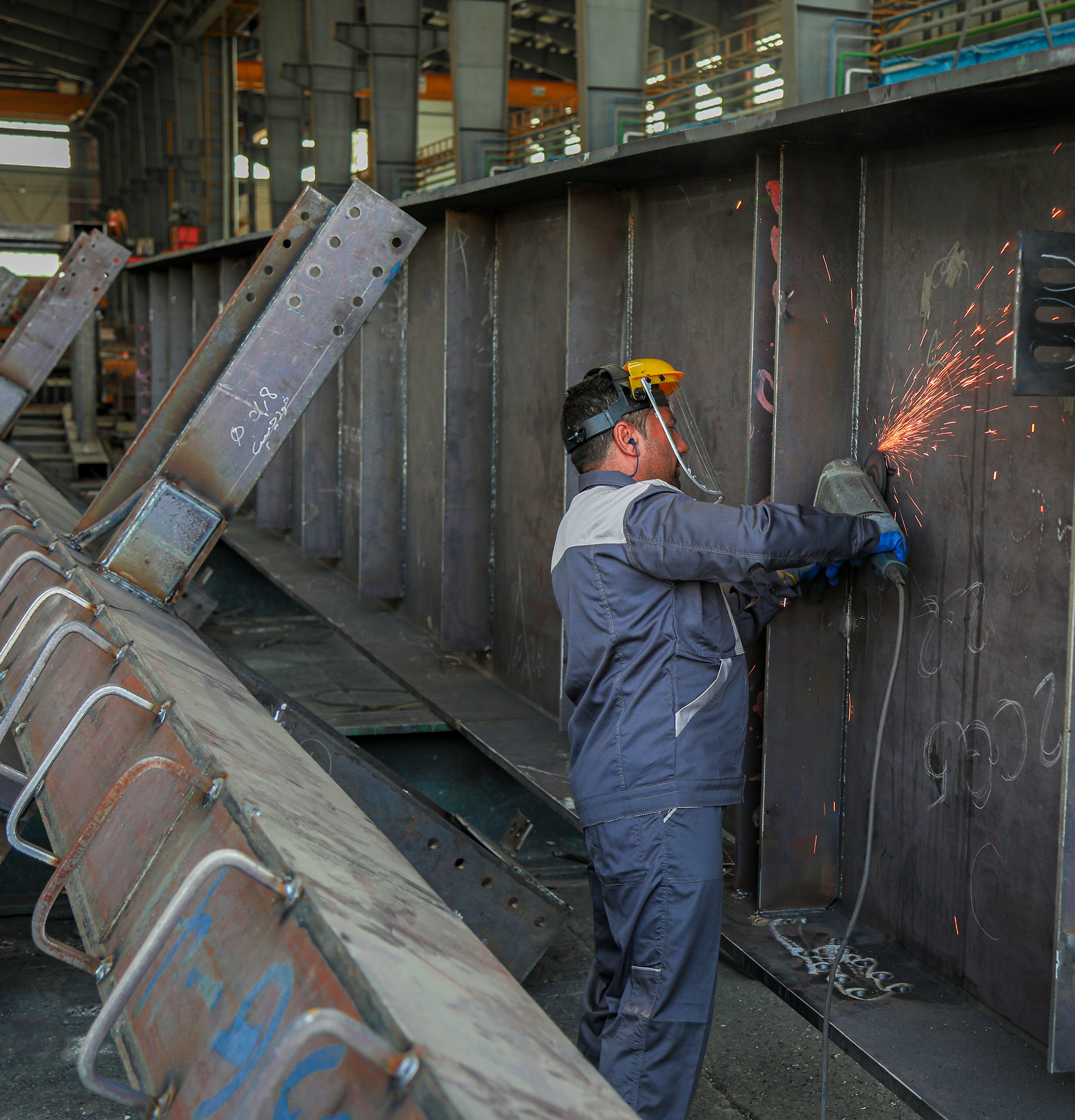 ساختن تمامی قطعات تحت نظارت داریم بازرسین کنترل کیفیت کارخانه در سالن های تولید مشتمل بر 6خط تولید به ظرفیت ماهانه 2500 تن انجام میپذیرد . این سالن ها با بهره گیری از ماشین آلات بروز مانند گیوتین 6متری ، دستگاه برش CNC،دستگاه برش پلاسما ،دستگاه برش طولی 10فکه ، دریل های رادیال ، اره ی نواری ، دستگاه پانچ ، دستگاه نبشی بر،دستگاه H ساز ،دستگاه SMGW، دستگاه مونتاژ هیدرولیک ،دستگاه جوش زیر پودری ،دستگاه جوش الکترواسلگ ، جرثقیل های سقفی10تا 25،دستگاه پخ زن سردGERIMA مخاذن ذخیره ی گازهای Co2، اکسیژن وآرگون فرآیند ساخت را انجام میدهند.